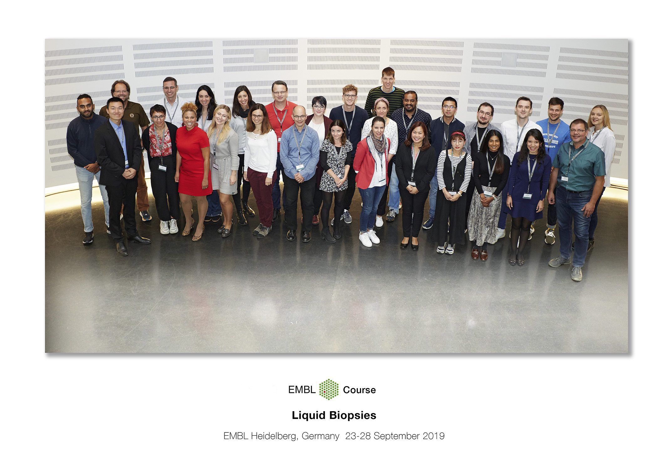 Group Photo, with all the 16 participants, the organisers, trainers and guest speakers at EMBL Practical Course on Liquid Biopsies (Sept. 23-28, 2019) Heidelberg, Germany. Yours truly can be identified as the only person looking away from the camera (and probably at the food!)